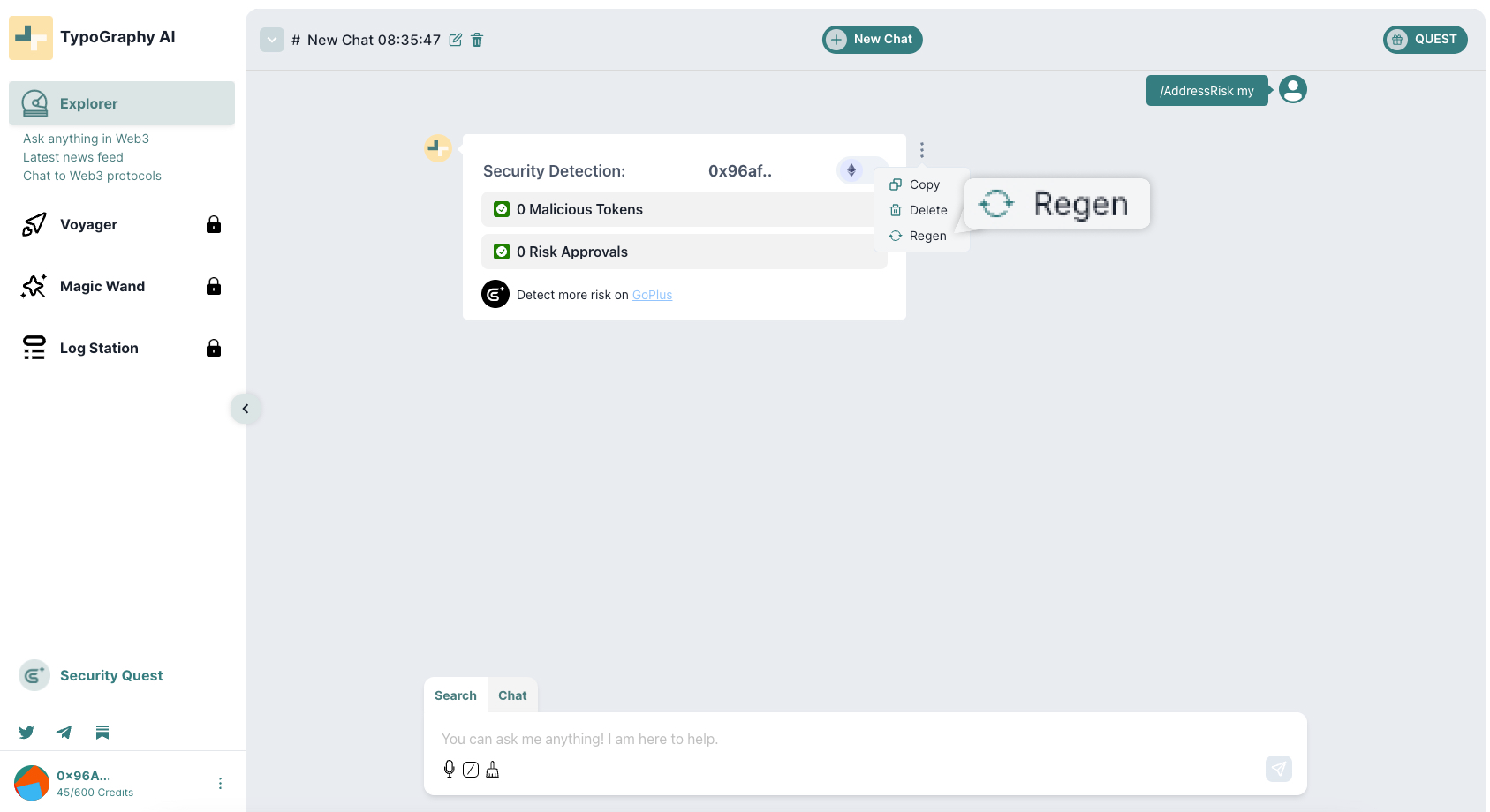 <figure><img src="https://414005842-files.gitbook.io/~/files/v0/b/gitbook-x-prod.appspot.com/o/spaces%2FHeD1wj1W7jDRVa0zgxTW%2Fuploads%2Fe9KdUtGfEXza8VfUSVAL%2Fregen.png?alt=media&#x26;token=66a9d79b-e7be-4a23-aead-774c8ca9c75a" alt=""><figcaption><p>Regen a Response</p></figcaption></figure>